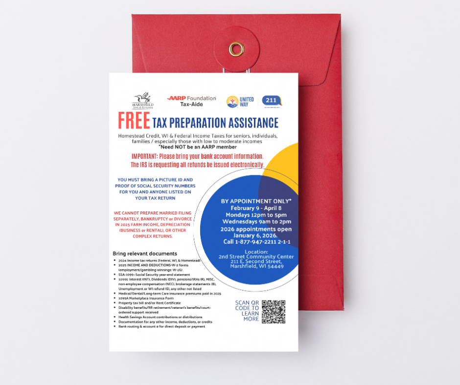 A Qualified Charitable Distribution (QCD) allows you to give directly from your IRA to Marshfield Area United Way. Your gift counts toward your required minimum distribution (RMD) and can reduce your taxable income — all while strengthening programs that make a big difference in the lives of working families in our community.