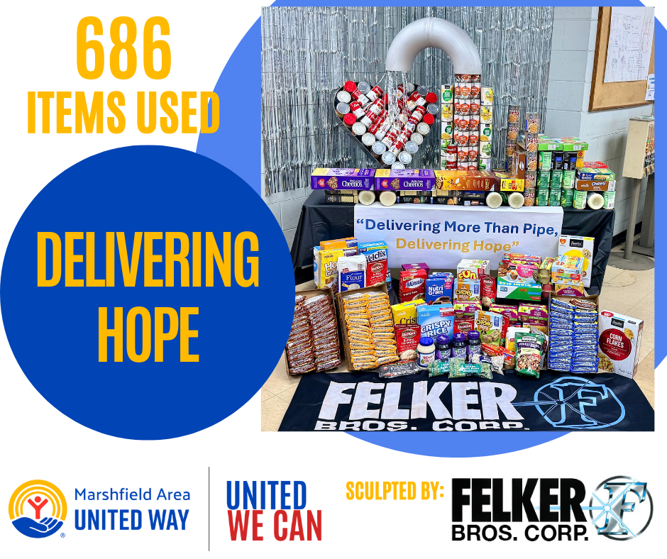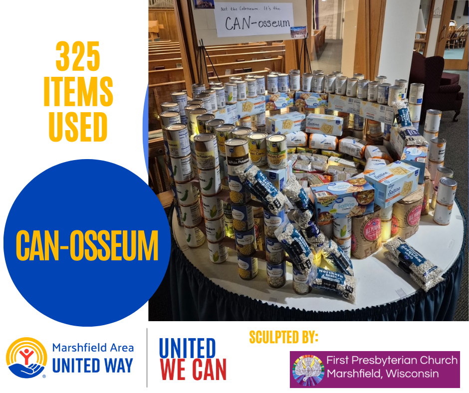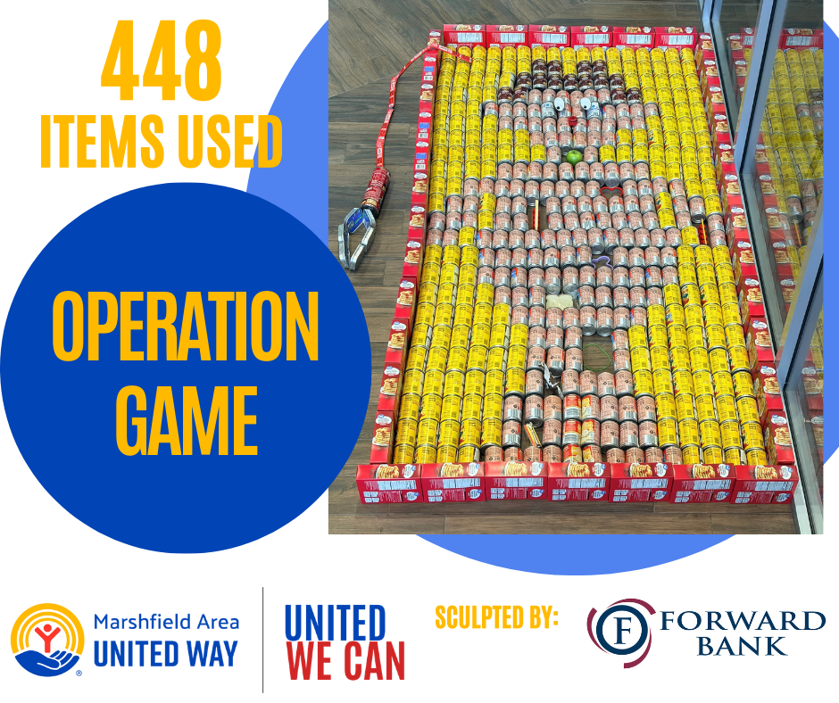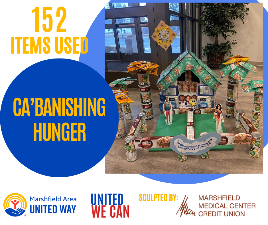 Businesses and organizations will build sculptures using non-perishable food items (not expired or within 3 months of expiration). Sculptures should be 95% made from pantry items, though structural supports can be used to keep the sculpture sound. Labels on cans and boxes cannot be damaged or removed. Once completed, teams will submit their sculpture photos to the Marshfield Area United Way, where they will be featured in a Facebook voting contest. The public will vote for their favorites using a thumbs up (1 point) or a ❤️ heart (2 points).