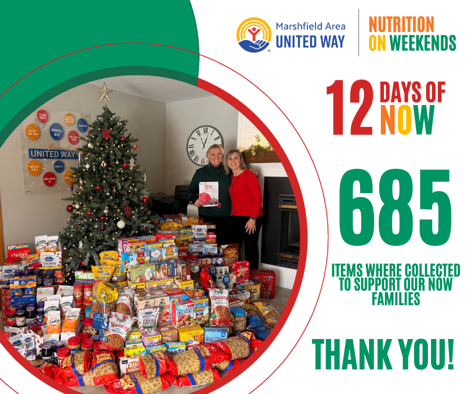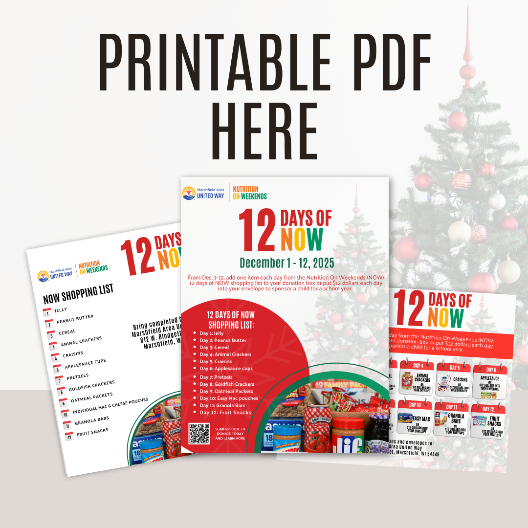 From Dec. 1–12, add one item each day from the Nutrition On Weekends (NOW) 12 days of NOW shopping list to your donation box or put $12 dollars each day into your envelope to sponsor a child for a school year.