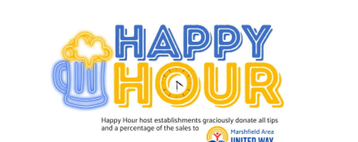 Happy Hour host establishments graciously donate all tips and a percentage of the sales to Marshfield Area United Way